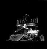 Fotografo: Manuel Martínez MuñozFecha: 10-1975Lugar: FígaroTipología: Imagen digitalSoporte: Archivo de ordenadorColor: Blanco y negroEspectáculos: El combate de Ópalos y Tasia / La carroza de plomo candenteFotografías: 5Signatura: FOT-641458Ficha artística: Espectáculo compuesto por 'La carroza de plomo candente', y 'El combate de Ópalos y Tasia', de Francisco Nieva. Dirección: José Luis Alonso. Escenografía y vestuario: Grupo Escuela A. D., Moisés Guirguis y J. A. Cidrón. Intérpretes: Laly Soldevila, José María Prada, Rosa Valenti, Félix Navarro, Valeriano Andrés, Pilar Bardem, Eddy Lage, Luisa Rodrigo, Julia Trujillo, Ana María Ventura. Estreno: 28 de abril de 1976 en el Teatro Fígaro de Madrid