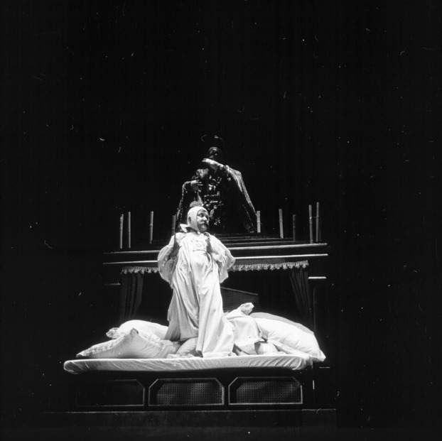 Fotografo: Manuel Martínez MuñozFecha: 10-1975Lugar: FígaroTipología: Imagen digitalSoporte: Archivo de ordenadorColor: Blanco y negroEspectáculos: El combate de Ópalos y Tasia / La carroza de plomo candenteFotografías: 5Signatura: FOT-641456Ficha artística: Espectáculo compuesto por 'La carroza de plomo candente', y 'El combate de Ópalos y Tasia', de Francisco Nieva. Dirección: José Luis Alonso. Escenografía y vestuario: Grupo Escuela A. D., Moisés Guirguis y J. A. Cidrón. Intérpretes: Laly Soldevila, José María Prada, Rosa Valenti, Félix Navarro, Valeriano Andrés, Pilar Bardem, Eddy Lage, Luisa Rodrigo, Julia Trujillo, Ana María Ventura. Estreno: 28 de abril de 1976 en el Teatro Fígaro de Madrid