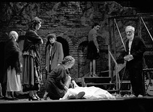 Fotografo: ChichoFecha: 1986Lugar: Teatro Español de MadridTipología: NegativoSoporte: SintéticoColor: Blanco y negroEspectáculos: Los despojos del invicto señorFotografías: 8Signatura: FOT-720919Ficha artística: Autoría: Lorenzo Fernández Carranza. Dirección: Antonio Andrés Lapeña. Escenografía: Luis Adalid y Andrea D'Odorico. Vestuario: Begoña del Valle Iturriaga. Música: Paco Aguilera. Intérpretes: Antonio Dechent, Josefina Díaz, Eva Guerr, Pastora Peña, Alberto Valverde, Juan Caballero, Jorge Roelas, Julia Torres, Paco Prada, Amparo Gómez Ramos, Ramón Durán, María Jesús Andany, Manuel Demoro y Franky Huesca. Estreno: 7 de noviembre de 1986 en el Teatro Español de Madrid