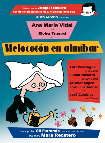 Fotografo: Jesús AlcántaraFecha: 2005Tipología: Imagen digitalSoporte: Archivo de ordenadorColor: ColorEspectáculos: Melocotón en almíbarFotografías: 12Signatura: FOT-806519Ficha artística: Autoría: Miguel Mihura. Dirección: Mara Recatero. Escenografía: Gil Parrondo. Vestuario: Peris. Iluminación: José Martini. Intérpretes: Ana María Vidal, Elvira Travesí, Luis Perezagua, Julián Navarro, Crismar López, José Luis Alonso y José Carabias