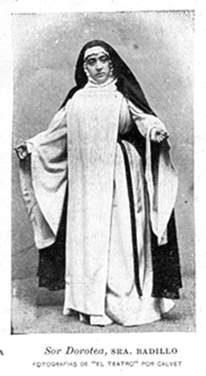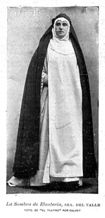 Siguiendo con las interpretaciones hechas de la onomástica de la obra, nos encontramos el nombre de la monjita que, en connivencia con Máximo y el Marqués, posibilitará la escapatoria de Electra del convento: la hermana Dorotea (Fig. 7), que, efectivamente, como un “regalo de dios” ayuda a solucionar el conflicto, por lo que Kidd considera que hace la función de dea ex machina, propia de las tragedias de Eurípides, pese hay que hay cierto consenso, al que me uno (Cao, 1995: 300; Iglesias Zoido, 2006: 464), en considerar que esta función la hace la aparición del fantasma de Eleuteria a su hija, al asegurar que no debe hacer caso a la calumnia inventada por Pantoja y que no le une ningún lazo de sangre con Máximo, el hombre que ama (Fig. 8).
