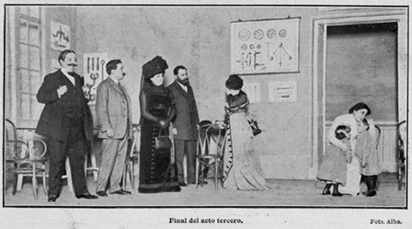 Casandra se encuentra en situación de gran dolor y abatimiento. Recordemos que ha sido privada de sus hijos, que su marido la ha abandonado, seducido por el dinero que le ofrecía Doña Juana, que ella misma se ha convertido en asesina y, además (como la Casandra de Esquilo y, sobre todo, de Eurípides), la destrucción de su enemiga puede acarrear su propia muerte, si el tribunal así lo sentencia. En estas circunstancias llega a ella Rosaura, la mujer de Ismael, uno de los sobrinos de la anciana muerta. Esta Rosaura es el personaje mejor valorado por Galdós en su Casandra (Fig. 14). Si, como está admitido, con esta novela y el drama homónimo Galdós pretende hacer un alegato contra la intransigencia religiosa y denunciar los abusos de la Iglesia durante estos años en nuestro país, es preciso hacer la salvedad de que nos encontramos ante una obra que puede llamarse anticlerical, pero, de ninguna manera antirreligiosa. Por el contrario, Galdós nos expone, en buena medida, lo que podemos llamar su “teología” (recuérdese la división del Dios de los ricos, igual al Dios de la Administración o Dios oficial, y el Dios de los pobres, aquel que desciende a donde nadie quiere). La figura de Rosaura, mujer dedicada a su casa y a la crianza de sus hijos, que va a la iglesia sólo cuando puede y que no rechaza la amistad de Casandra, aunque esta viva en concubinato, sería la representante de esa religión auténtica del corazón y de las obras, que no de los ritos. Es su bondad, que la lleva a cuidar como si fueran suyos a los hijos de la protagonista presa, y es su buen hacer para reconciliar a los amantes y para vencer la resistencia de Rogelio a contraer matrimonio eclesiástico los que hacen que Casandra recapacite sobre su vida, y que, como la Casandra esquilea, de su sufrimiento profundo llegue al mayor punto de altura moral que la lleve al verdadero conocimiento. En este sentido, es revelador el diálogo de las dos mujeres en el final de la obra: