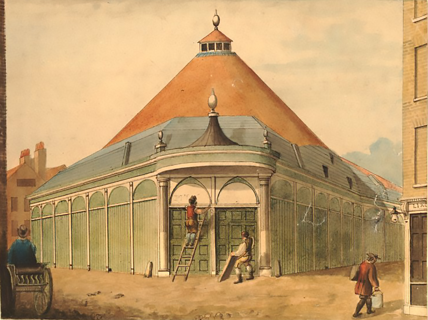 Fig. 3. Pabellón Olímpico de Astley en Wych Street en Londres. Acuarela de James Winston (1806). Documento © The Trustees of the British Museum, Londres