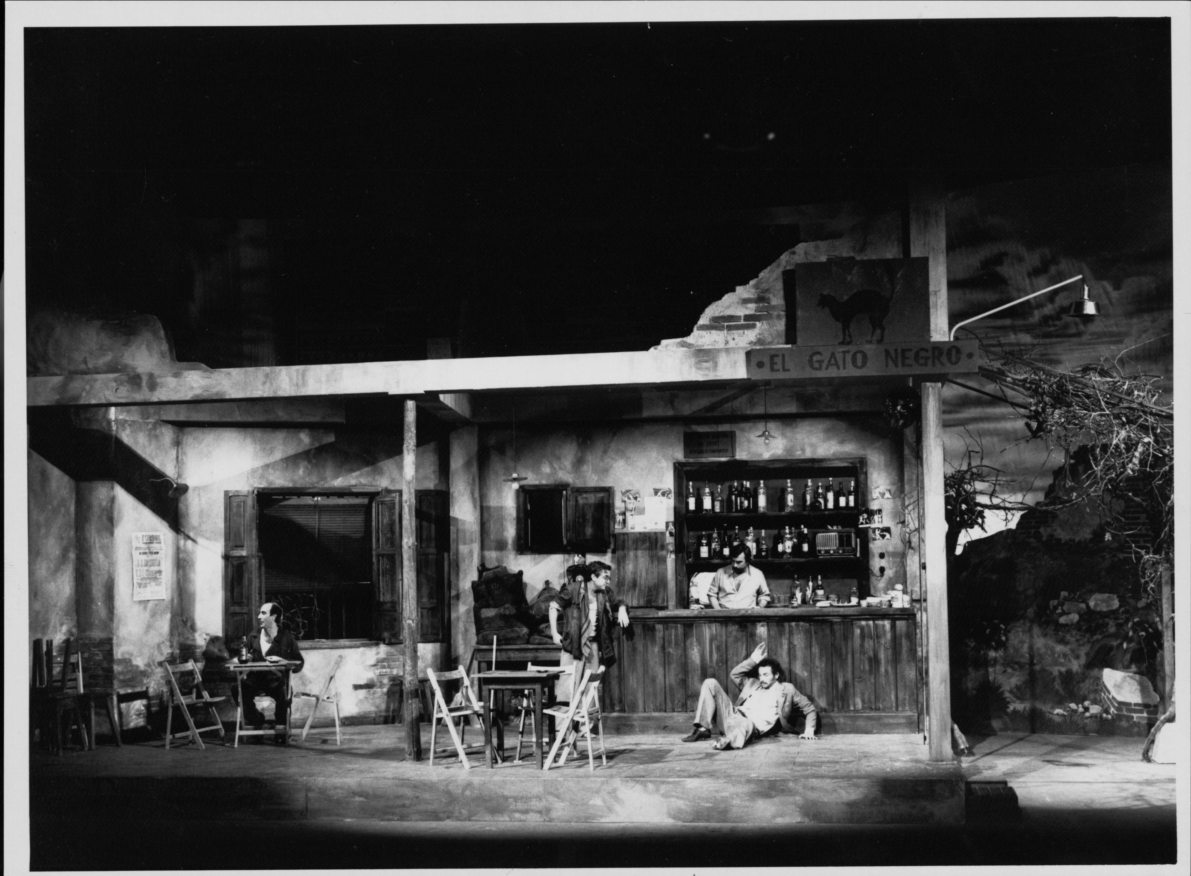 osé Martín Recuerda vio cómo se le prohibía La llanura a principios de los años cincuenta, por evocar la Guerra Civil y sus funestas consecuencias, y aún en 1965, en plena “apertura” de Fraga y García Escudero, se le prohibió a José María Rodríguez Méndez Bodas que fueron famosas del Pingajo y la Fandanga; aun tratándose de una obra ambientada en 1898, la forma de abordar el tema, tan ajena a la épica belicista del régimen, hizo que el texto resultara inviable para los censores franquistas. Otras obras escritas durante estos años ni siquiera llegaron a presentarse a censura: la respuesta del régimen era tan previsible que ni se intentó estrenarlas. Es lo que ocurrió con La taberna fantástica (Fig. 8) y con El camarada oscuro, tragedias complejas de Alfonso Sastre. O con Es mentira, una tragedia sobre la pena de muerte escrita en 1974 por Jesús Campos, a quien sí se le autorizó, en cambio, 7000 gallinas y un camello, en la que el mensaje político se presentaba en forma de drama rural.