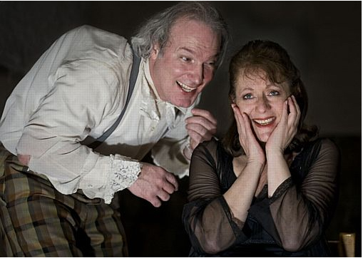 Empecemos el estudio por las observaciones que se refieren a la más antigua de las obras a las que este va dedicado, El gran ceremonial (1963), creada en plena época franquista por un autor cuya postura antifranquista es bien conocida. Es una muestra del teatro de carácter ritualizado, muy de moda en los años cincuenta y sesenta del siglo pasado, y, al mismo tiempo, del llamado “teatro pánico”1, del que Fernando Arrabal es el más conocido representante. Asociado con el teatro de oposición a la dictadura, Arrabal, en sus dramas escritos durante este período, rompe los tabúes que tocan la religión y la maternidad, atentando contra el tabú relacionado con el tradicional concepto de familia promulgado por el régimen franquista (Fig. 1). En El gran ceremonial ofrece una imagen deformada de la madre de familia, una imagen repugnante y escalofriante, duplicada en la obra, ya que no solo la progenitora del protagonista, Cavanosa, sino también la de su doble femenino, Lys, son madres sádicas y perversas. En ambos casos esa figura degradada de la madre es parte de una familia incompleta, formada por ella y un hijo o una hija. Falta el padre de familia, y la madre, nada cariñosa con su hijo o hija, posesiva y opresora con ellos y siempre extremadamente preocupada por la castidad de su progenitura, parece aspirar a ser madre y padre a la vez. Las figuras maternas de la obra de Arrabal desmienten la imagen de la madre como una tierna y cariñosa, protectora y maestra de la vida, llena de sabiduría y paciencia. Tanto la madre de Cavanosa como la de Lys oprimen a sus hijos, tienden a esclavizarlos por completo y, finalmente, llegan a hacerse ellas mismas esclavas de sus víctimas (Fig. 2). La progenitora de Lys no la deja salir de casa ni ver a un hombre. Para que la chica no se escape mientras ella duerma, ata el tobillo de Lys a su propia pierna. “Por la mañana, cuando se despierta, como tiene miedo de que me haya escapado por la noche, me huele entre piernas” (Arrabal 1986: 170), confiesa Lys cuando, al burlar la vigilancia de su madre, se escapa y consigue hablar con un hombre, Cavanosa. La madre de Cavanosa vigila que su hijo conserve la virginidad. Le deja tener relaciones sexuales solo con las muñecas de tamaño natural que llenan su dormitorio o se ofrece a satisfacer ella misma las necesidades sexuales de su hijo, ya que llega a sentirse celosa hasta de las muñecas.