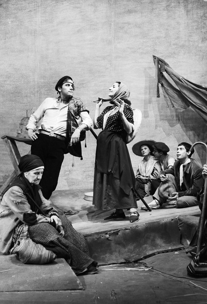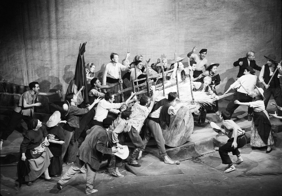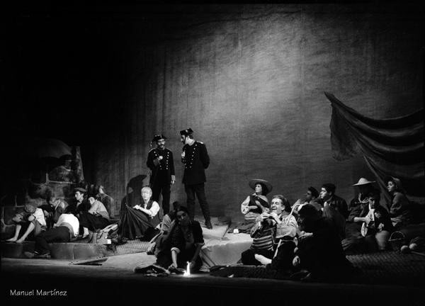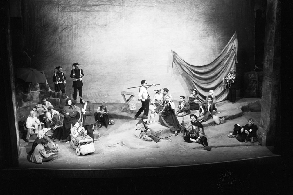 Nati Mistral es para Monleón una Mari Gaila “excelente”. Destaca asimismo la “precisión” de Manuel Dicenta como Pedro Gailo. Alberto Mendoza, como el Compadre Miau, está “francamente bien”, pues da a su personaje “desgarro y picardía”. Las ilustraciones musicales de García Abril son breves y justas. El resultado fue satisfactorio: “Se aplaudió mucho, muchísimo, la noche del estreno. Sé que el público sigue aplaudiendo con el mismo fervor en las funciones sucesivas. Es éste un gran éxito del público español que todos debemos celebrar por lo que significa” [fig. 10].