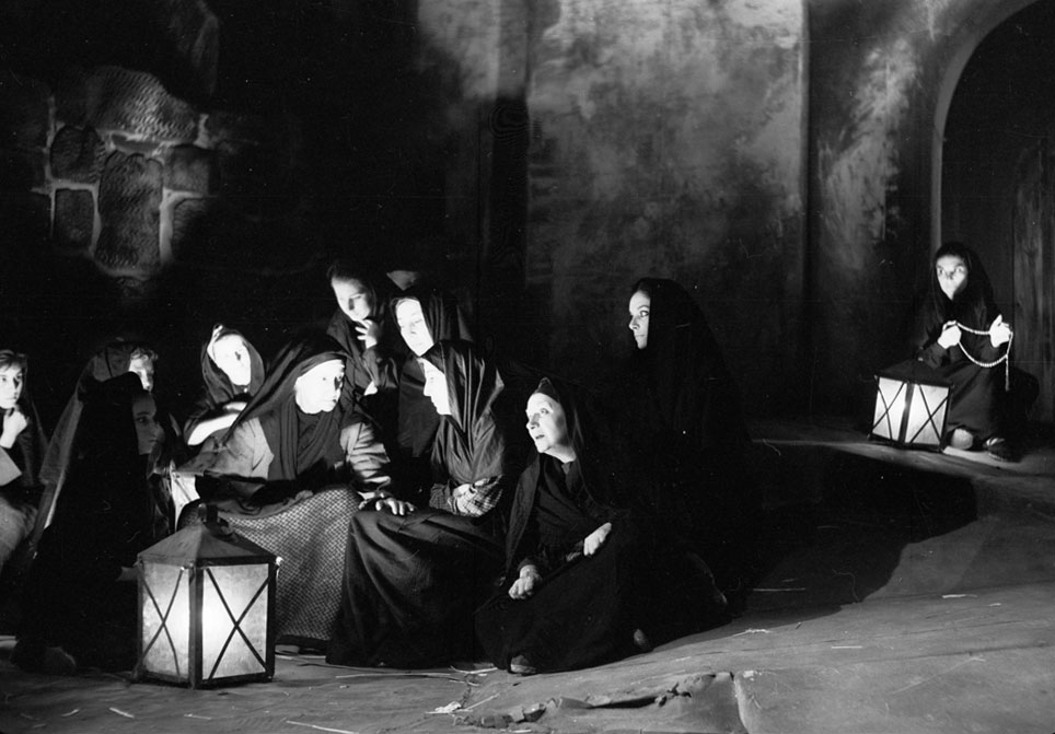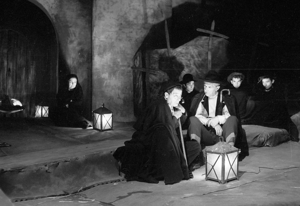 En La Vanguardia se dedicó un buen espacio tanto al estreno madrileño como al barcelonés [fig. 6]. Julio Trenas (1961) entrevistaba por ejemplo a José Tamayo, “auténtico renovador de los gustos del público, de la tendencia rutinaria de los empresarios e incluso del apoltronamiento de los autores”. Ahora se enfrentaba por fin al “Bertold Brecht español” en un más difícil todavía. En la misma página, Manuel Pombo Angulo (1961) escribía la “Nota crítica” de una representación a la que asistió “el todo Madrid”, dada la expectación levantada. Tras halagar el trabajo de Torrente como versionador, señalaba Pombo la admirable recreación del universo valleinclaniano, poblado de “ciegos mendigos, cantores, enloquecidos y videntes”, el acierto de los decorados de Burgos y la impecable interpretación de Nati Mistral (“recita, canta y llena la escena con su personalidad ardiente”) y Manuel Dicenta, acompañados por un “aceptable” Alberto Mendoza. El recibimiento del público, que estalló al final en aplausos, fue de “noche de apoteosis”. El 20 de enero Carmen Castro (1962) realizará a su vez una interesante comparación entre los personajes del calderoniano Pedro Crespo y Pedro Gailo, tomando como punto de partida el tema del honor [fig. 7]. Y el 15 de marzo, con motivo del estreno barcelonés en el Teatro Calderón, Del Arco entrevistaba a una triunfadora Nati Mistral, que reconocía en la actuación en Divinas palabras el momento más brillante de su carrera [fig. 8]. El mismo día Antonio Martínez Tomás reseñaba el espectáculo como “hondo, subyugante y sobrecogedor”, y veía en Valle-Inclán sólidas similitudes con Michel de Ghelderode. Tras dar cuenta de todos los tópicos sobre la Galicia mágica y atrasada y alabar la rica prosa valleinclaniana, “que abarca todos los matices del idioma”, se alababa “la fuerza y concentración dramática” de la adaptación de Torrente, así como “el vigoroso y excepcional sentido de la plástica y el ritmo escénico” con que supo dotar Tamayo al espectáculo: “su labor de director es un puro deslumbramiento, una visión trémula y pictórica, un desbordamiento de colores, de formas y de situaciones sobrecogedoras”. Al crítico le asombró la poderosa interpretación de Nati Mistral y Manuel Dicenta. Los decorados de Burgos fueron “de una expresividad sorprendente” [fig. 9]. El público barcelonés acogió Divinas palabras con parecido entusiasmo que el madrileño.
