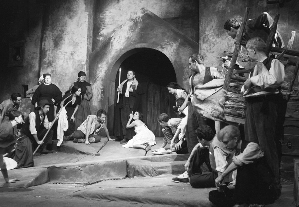 Interino (1961), desde las páginas de Informaciones, después de justipreciar la pieza valleinclaniana, indicaba que Tamayo había acertado en “la composición de las secuencias finales, en las que tuvo que mover grupos numerosos de personas en acelerada traslación”. La interpretación le pareció, sin embargo, “un tanto apagada en la primera jornada”, sobre todo en el caso de Alberto Mendoza (Séptimo Miau): “su voz debe alzarse más, su actitud debe ser más quiquiricosa y desafiante, según creemos”. Manuel Dicenta y sobre todo Nati Mistral estuvieron “apasionados”: “Nati Mistral estuvo impresionante en gesto, en voz, en movimientos, en todo”. Los restantes actores del reparto (Milagros Leal, Anastasio Alemán, Javier Loyola o Carlos Ballesteros) fueron entonándose a lo largo de la representación. El público recibió la obra “con entusiasmo” aplaudiendo al final de cada uno de los tres actos [fig. 4].