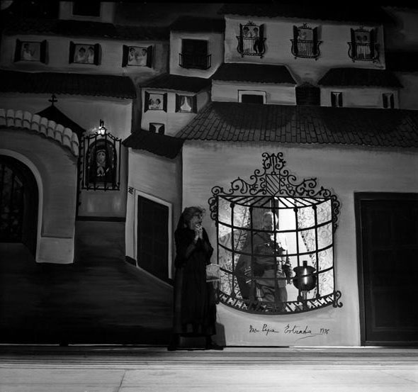 Julio Trenas (Arriba, 28 de septiembre de 1976) hacía la crónica, a toda página y en un tono poco crítico (en todos los sentidos) este “retablo de muñecos” o marionetas, calificándolo como “el esperpento más tierno, humanizado y costumbrista de los cuatro que escribió”. Era “sencilla y transparente” esta puesta en escena de Tamayo en la que nada desentona, todo es preciso, incluso la pintura naïf de Mari Pepa Estrada para la definición de los decorados, “que tienen la variedad, la gracia, la alegría, el colorido, el poder de evocación y el aniñamiento requeridos por la fábula de Valle”. Extraña caracterización del esperpento, sin duda. Los figurines de Víctor María Cortezo evocaban los cuadros de Cilla, y las interpretaciones de Antonio Garisa (“un prodigio de humanidad”), Juan Diego (“magistral”) y el resto del reparto (Mary Carmen Ramírez, Tota Alba o Alfonso Goda) fueron “excepcionales” [fig. 31].