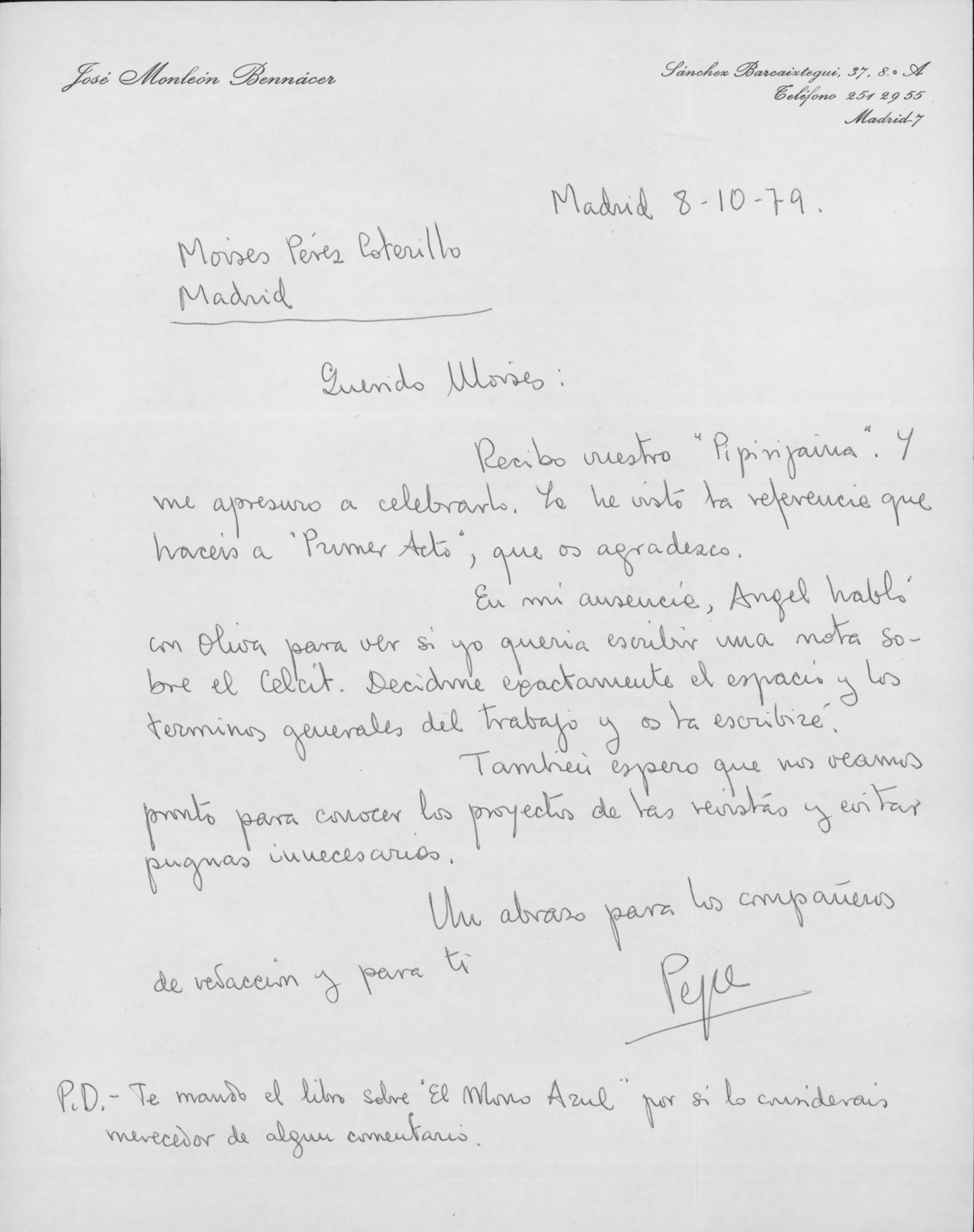 En este pequeño homenaje ofrecemos una carta de José Monleón, varios artículos de Moisés en El Público y algunas imágenes: