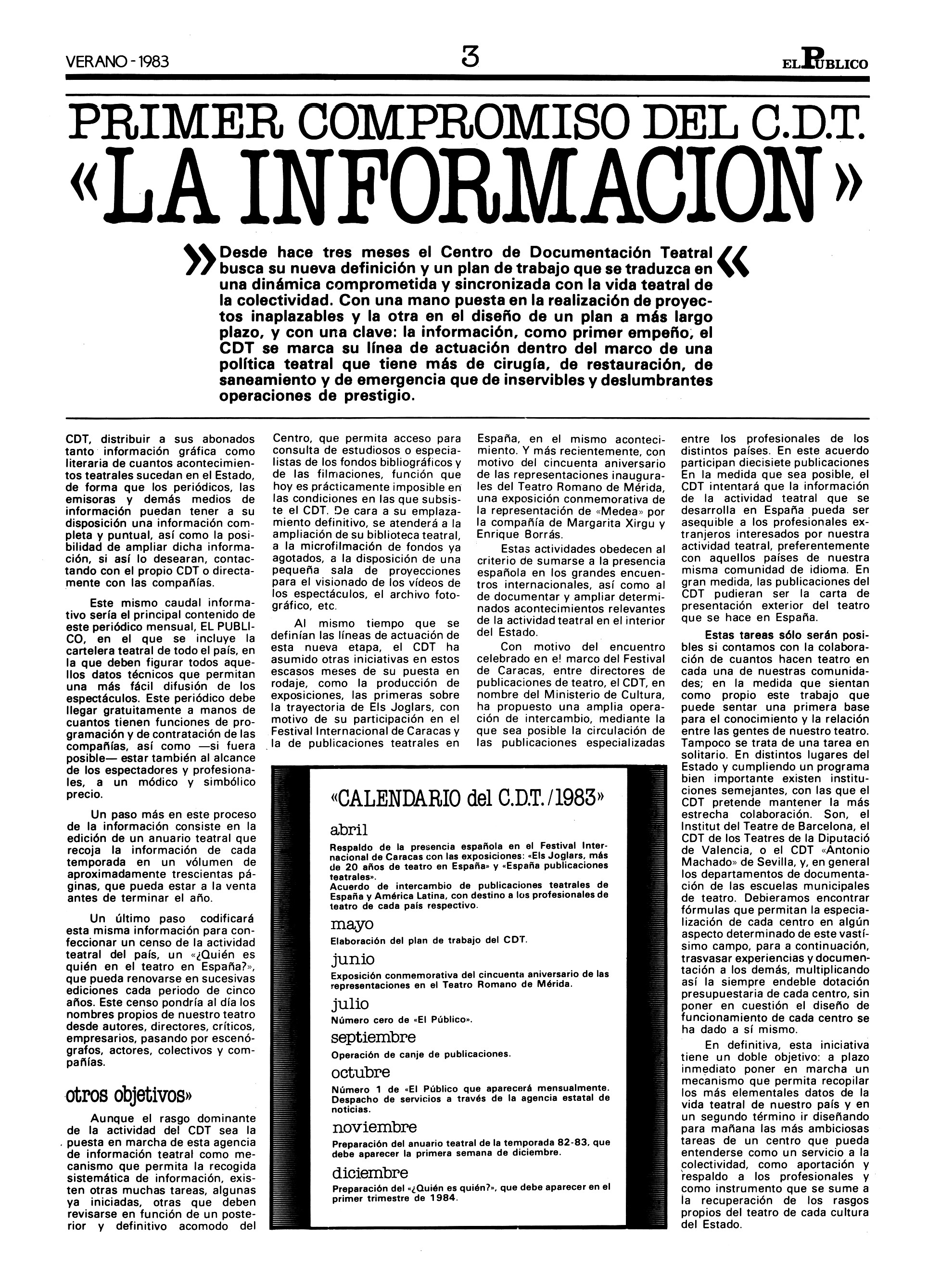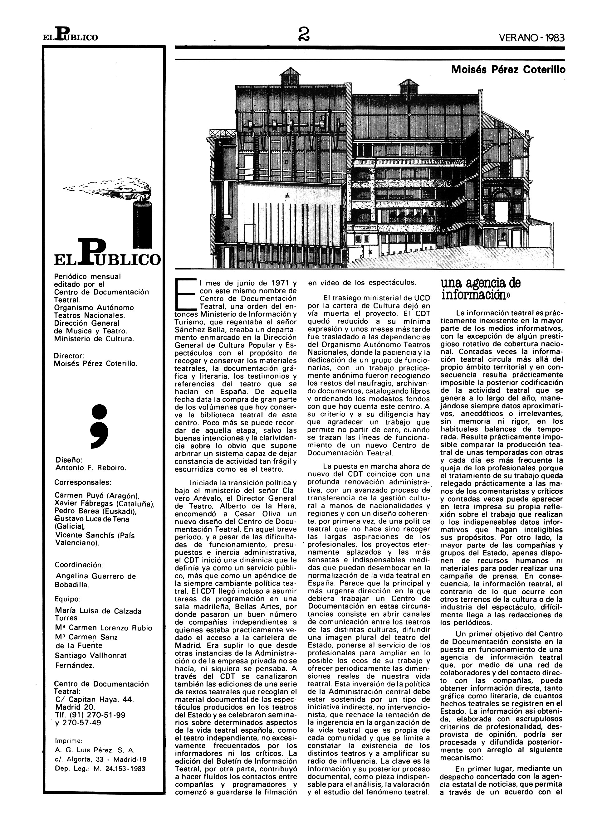 En 1983 es nombrado director del Centro de Documentación Teatral, donde realiza una labor histórica, con publicaciones tan importantes como la revista El Público, las colecciones de textos o los Anuarios. Permanece al frente de esta institución hasta que es cesado en 1992. Tras salir del CDT, regresa al ABC. En 1996 vuelve a ser nombrado director del CDT, pero no pudo volver a este cargo, al enfermar gravemente; fallece el 13 de febrero de 1997 en un hospital de Madrid y es enterrado en Miengo, su pueblo natal.