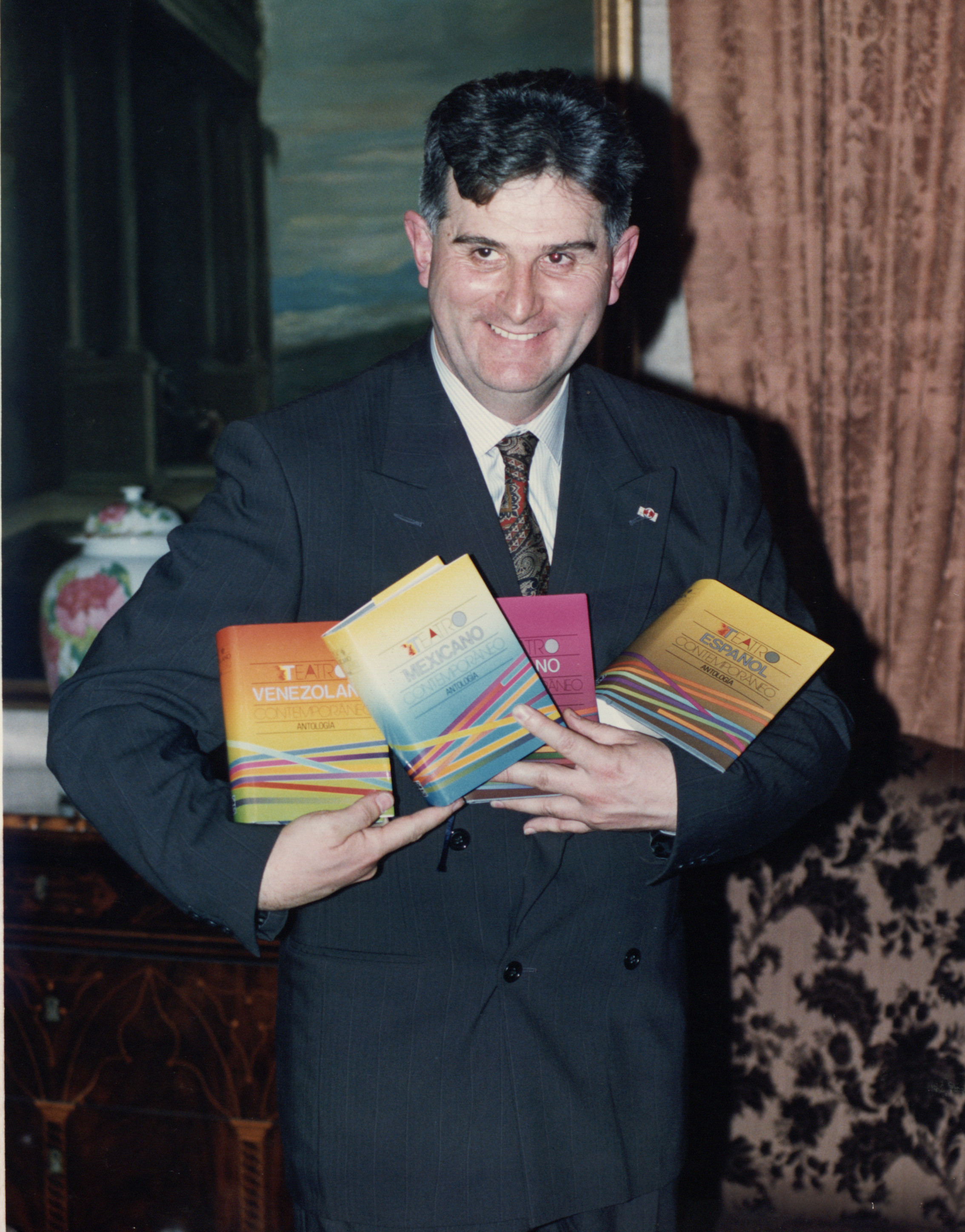 Por último, un retrato de Moisés, presentando una de sus grandes obras, la antología de literatura dramática iberoamericana que editó con el Centro de Documentación Teatral.