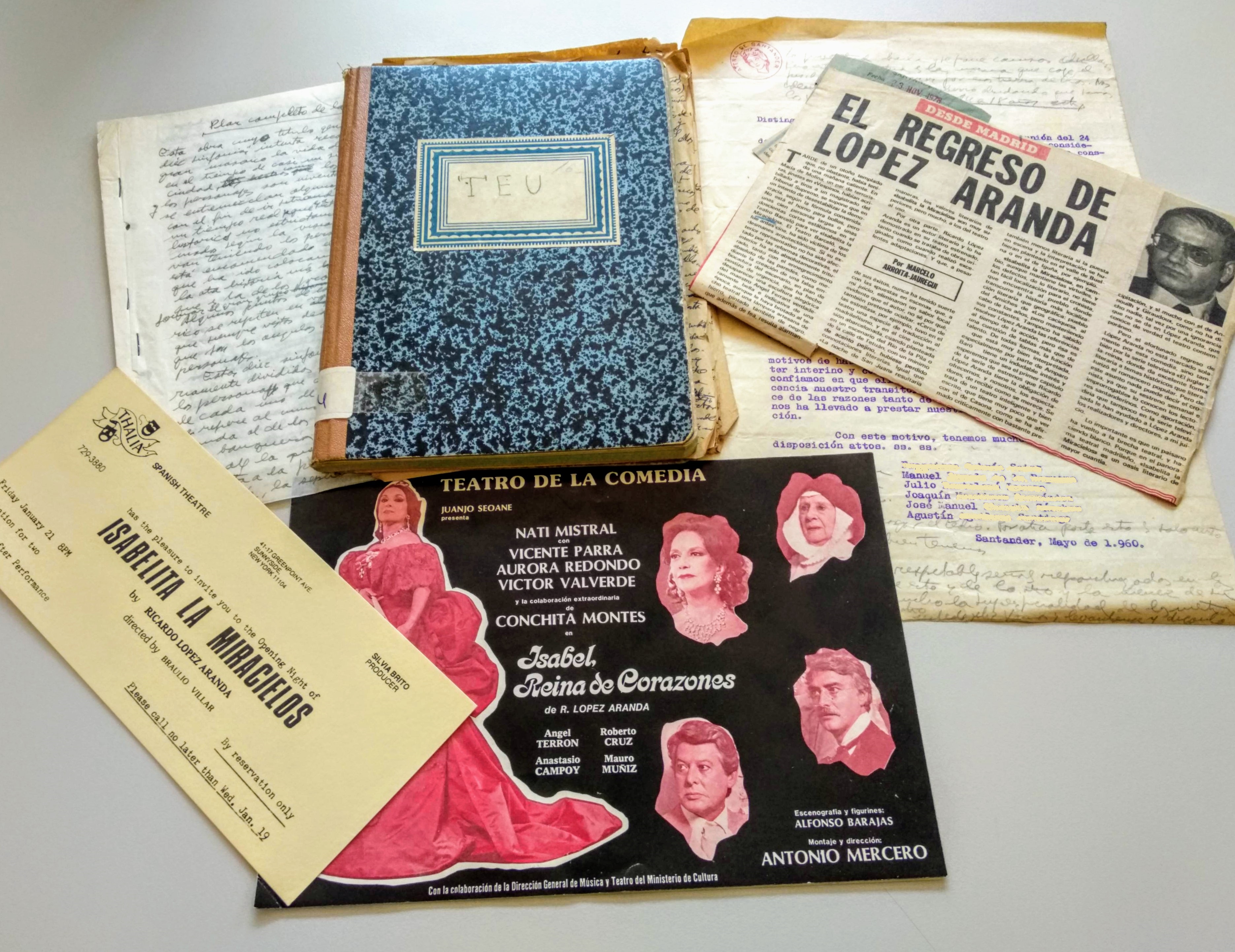 Ofrecemos en esta galería de imágenes una muestra de la documentación que el usuario puede encontrar en el fondo documental de Ricardo López Aranda. Documentos como programas de mano, bocetos de escenografías o documentos profesionales que reflejan la actividad profesional del director y dramaturgo.